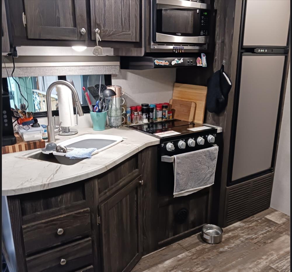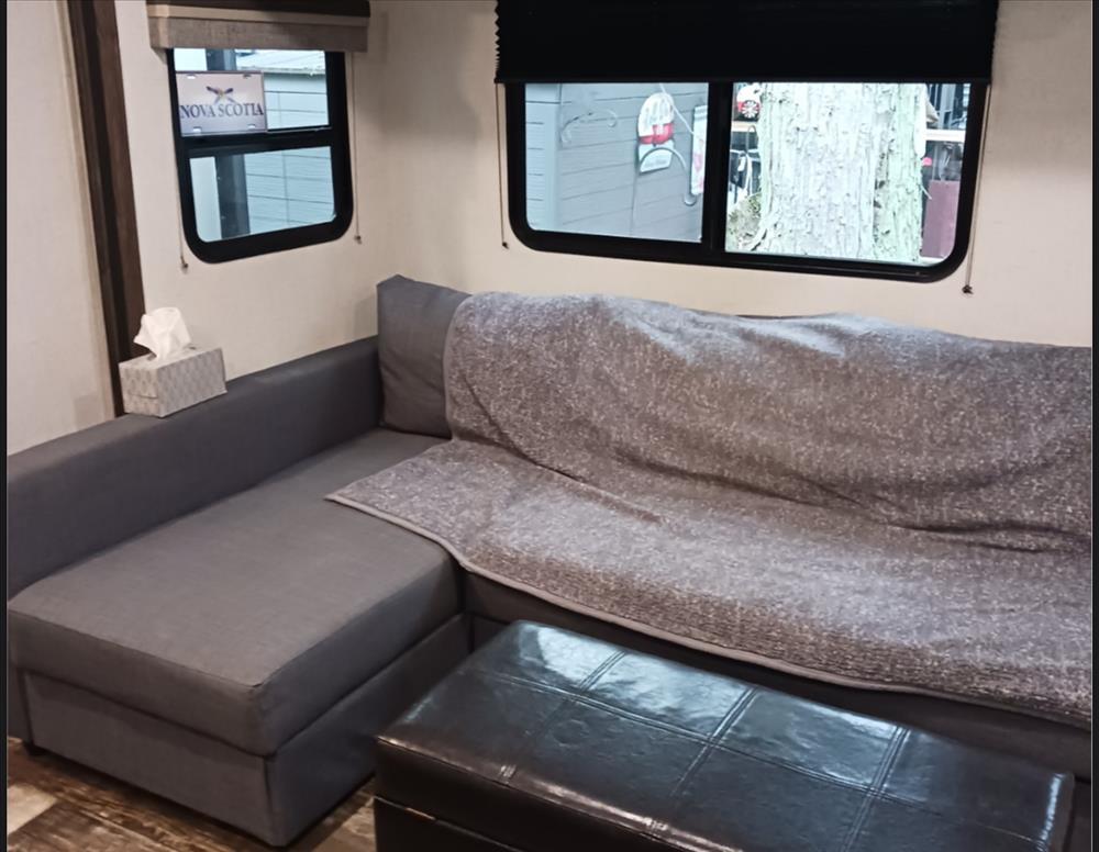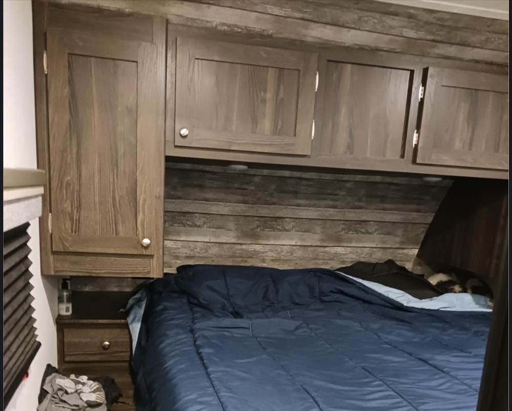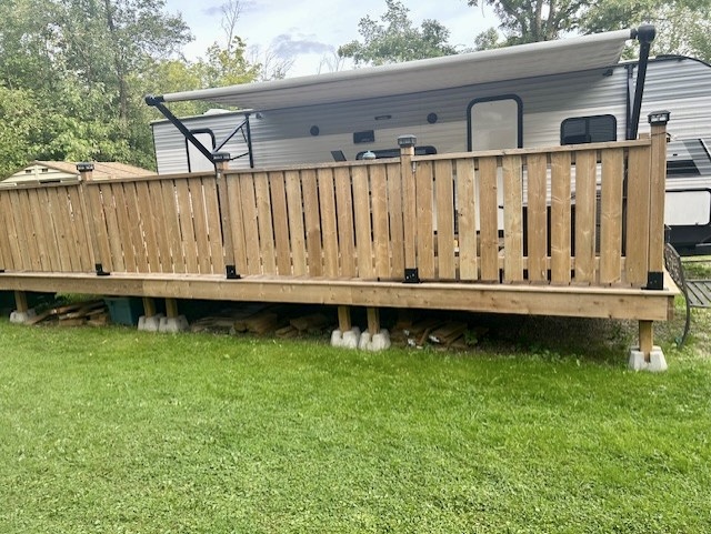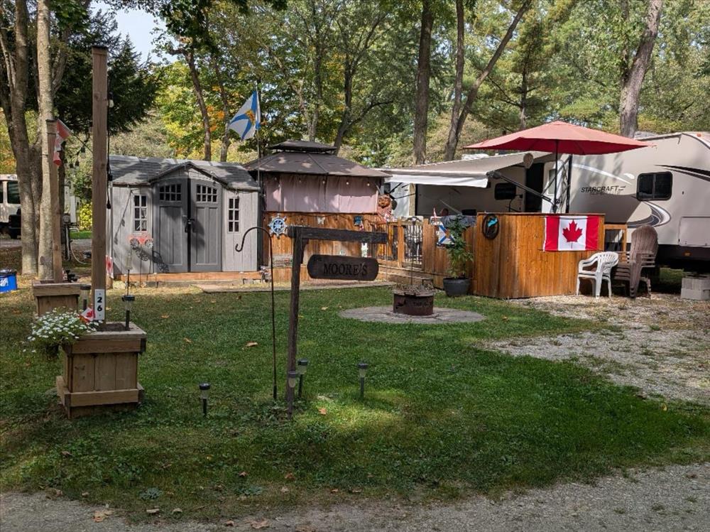 2020-31-foot (34’ with tongue) StarCraft Ultra lite trailer with 2 slide outs, with 2 decks, one is 28X10 and one is 10X10, there is a steel gazebo on the 10X10 deck, 8X10 resin garden shed.Front of trailer has double bed- lots of storage, bathroom has large shower, back bedroom has 3 bunks, built in dresser and storage. Bottom bed in back room turns into a dining table for the kids to play games etc. Trailer is being sold as a total package. All dishes/pots and pans/linens etc., will stay with the trailer. There is a small outdoor kitchen area, and an outdoor sink, and BBQ area on the deck. $51,500.00