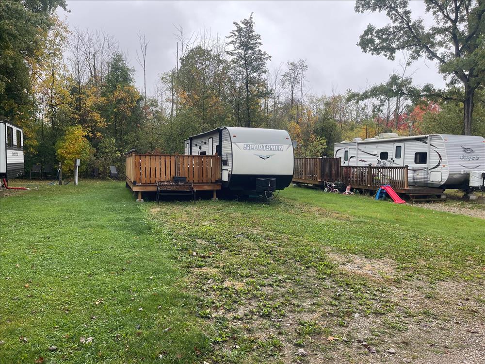 2021 32' (with hitch) KZRV Sportsman 261BHSE with 1 slide out, 25x10 new deck, 8 x 10 new shed with work bench, toolbox and full fridge Great Trailer used three seasons. No kids slept in it. Great shape, sleeps 10, front queen bed, back double bunk, large shower in bathroom, All you need to camp including TV, bedding, pots, pans, utensils, BBQ. Lawn mower. Weed whipper, backs on to greenbelt. $30,000