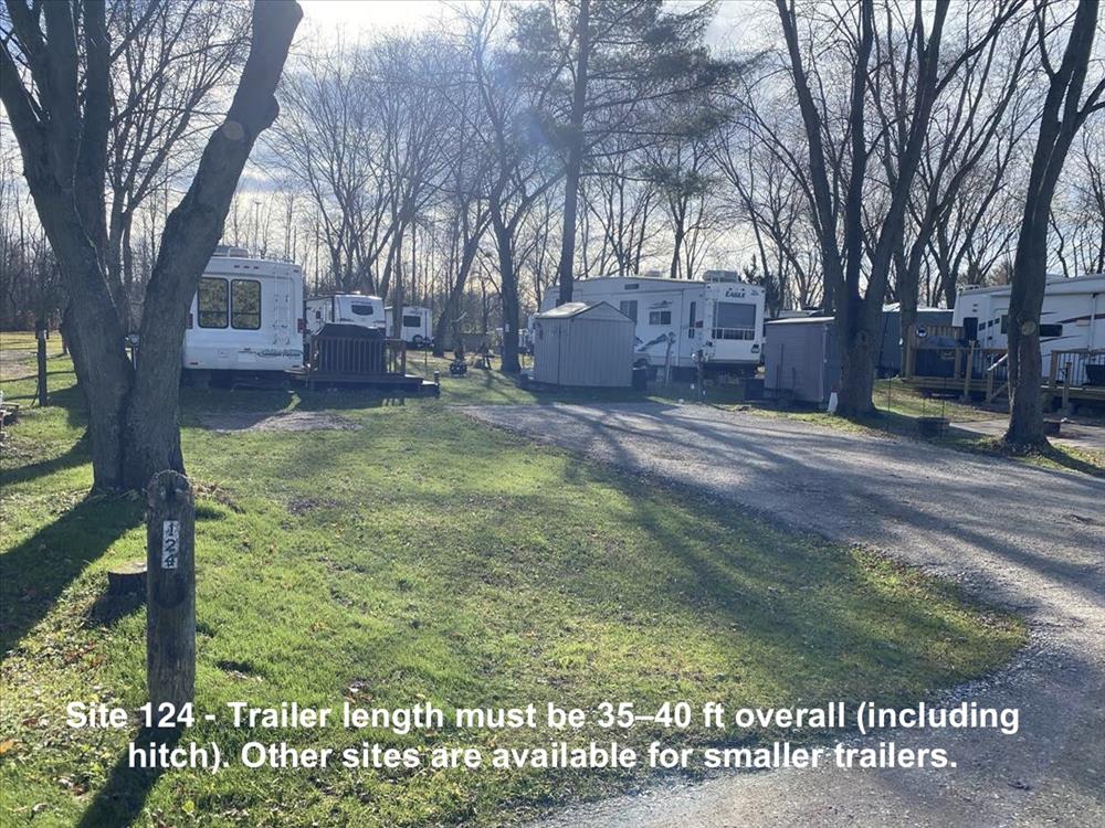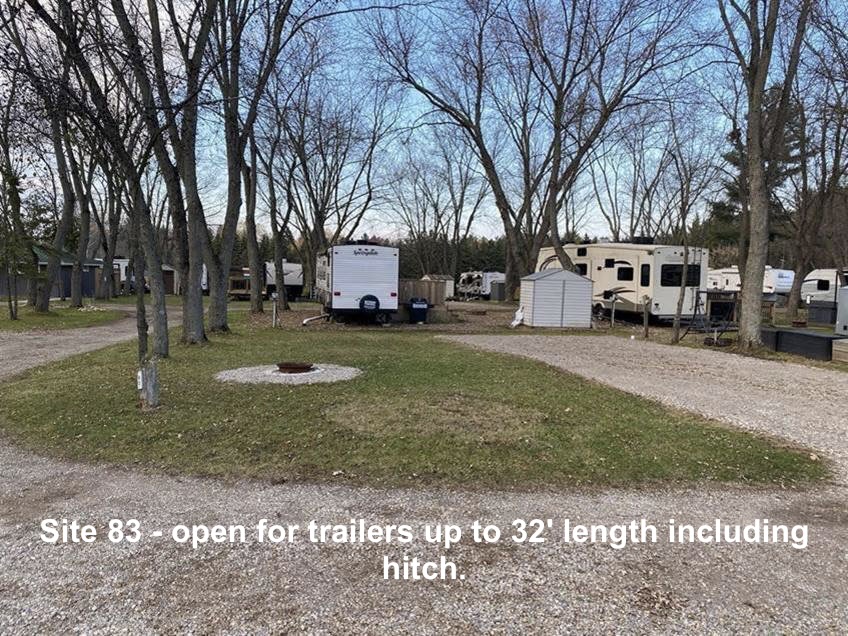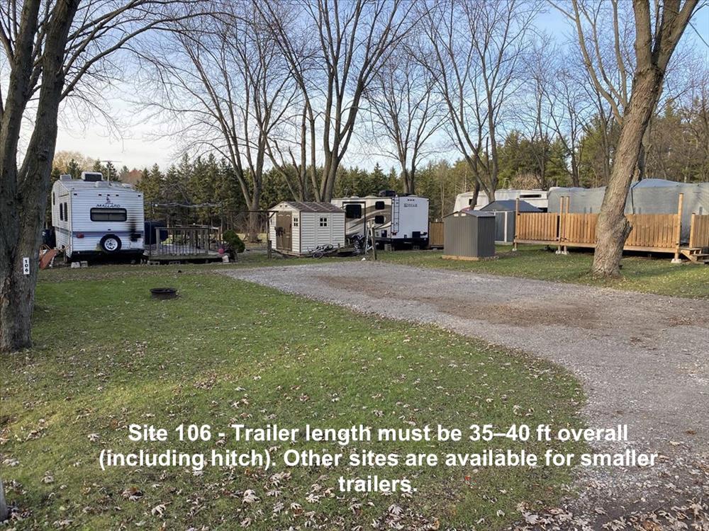 2026 Seasonal Sites available are listed in the pictures below. Please note the RV sizes each site will be utilized for. There are currently no available empty lots in the extended season. 2026 Site Fees: $3,700–$3,900 (depending on location), plus HST and hydro.